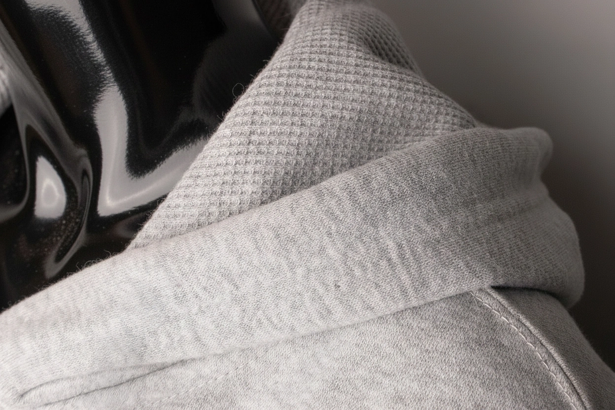 Self-colour waffle lined hood.